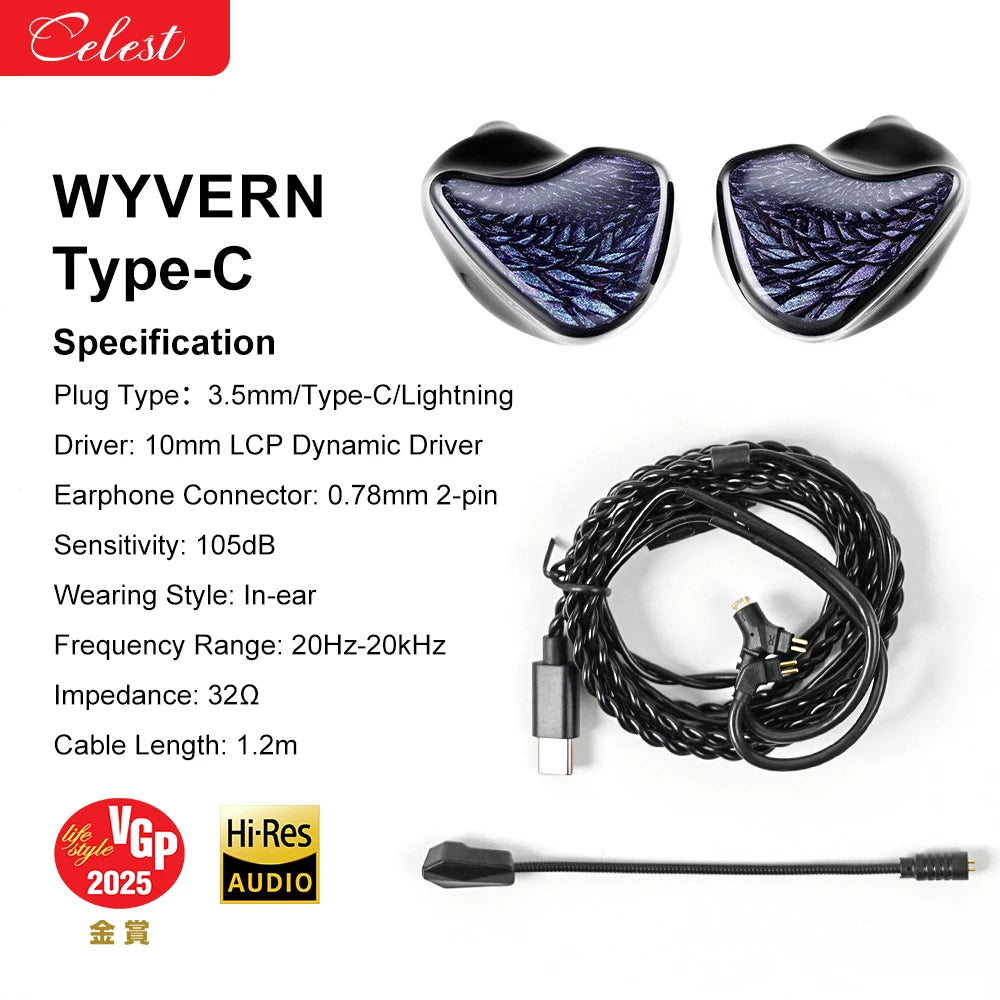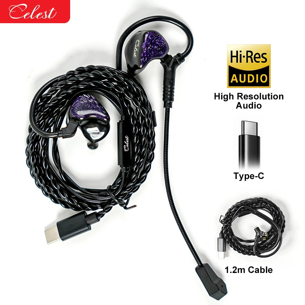 Celest Wyvern Black Type-C In Ear Earphone Monitor With Microphone Hifi Music Headphone IEMs Wired Gaming Earbuds For Gif