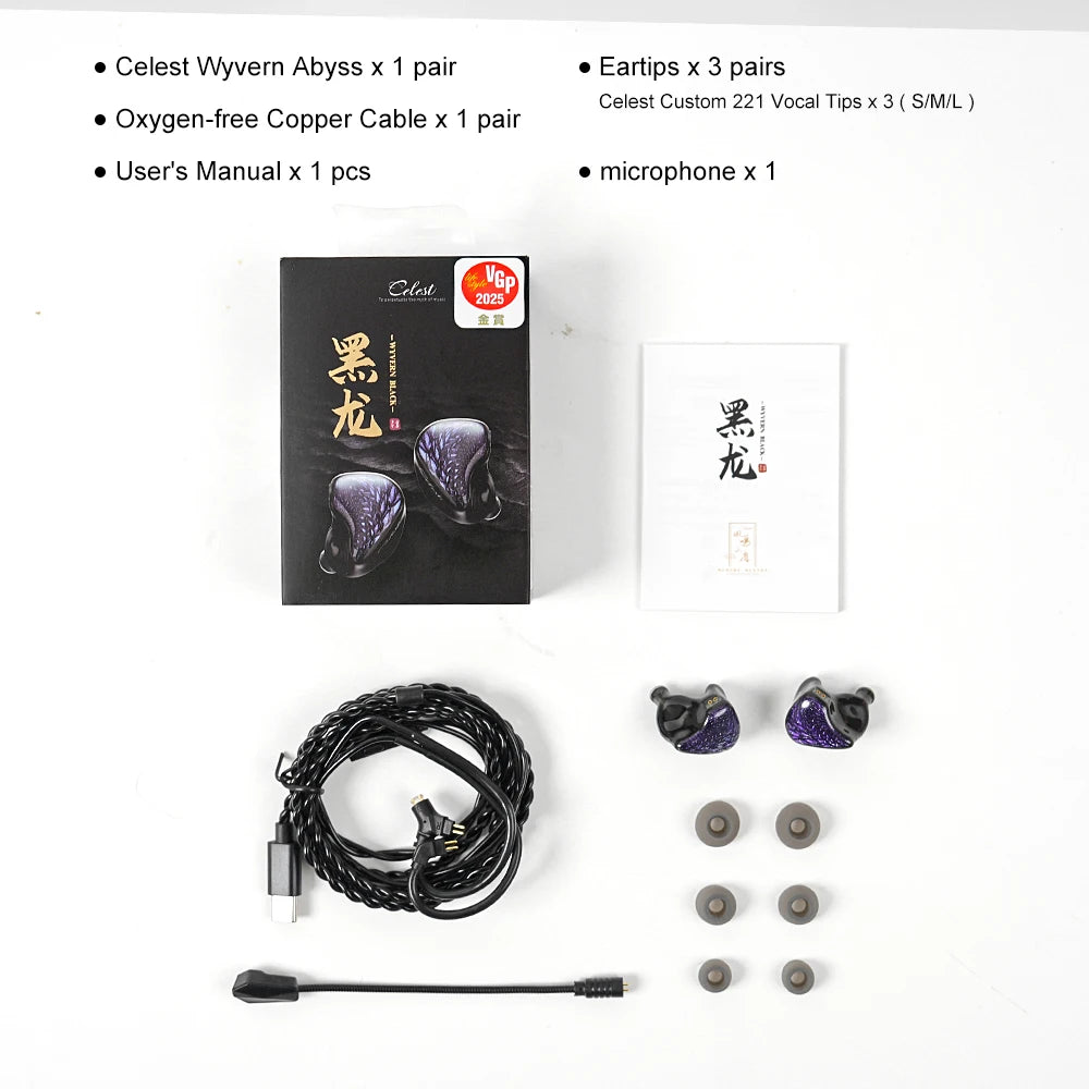 Celest Wyvern Black is a brand new single dynamic driver IEM designed with inspiration from Wyvern, a creator god from Chinese mythology. According to the backstory, Wyvern created the earth and brought forth the Phoenix and Qilin. With 3D printed resin material cavities, the pair has exciting looks featuring dragon wings of Wyern Black. It looks as stunning as it gets, probably among the best-looking IEMs from Celest so far. It houses a 10mm LCP diaphragm dynamic driver unit that delivers quality sound with low distortion and high clarity.