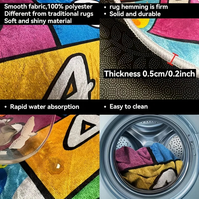 Cyberpunk Honeycomb Carpet, Cartoon Printed Game Mat, Large Gamer Decor, Fragmented Design, Non Slip Indoor Floor Rug
