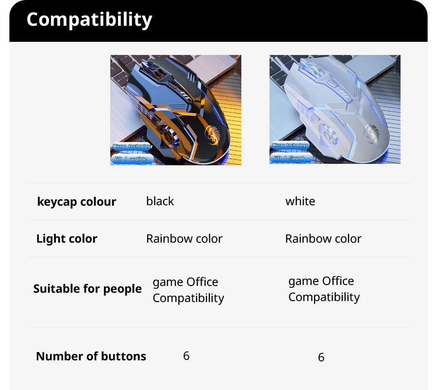 • Colorful Lighting :The mouse features colorful lighting that adds a touch of style to your gaming or office setup.