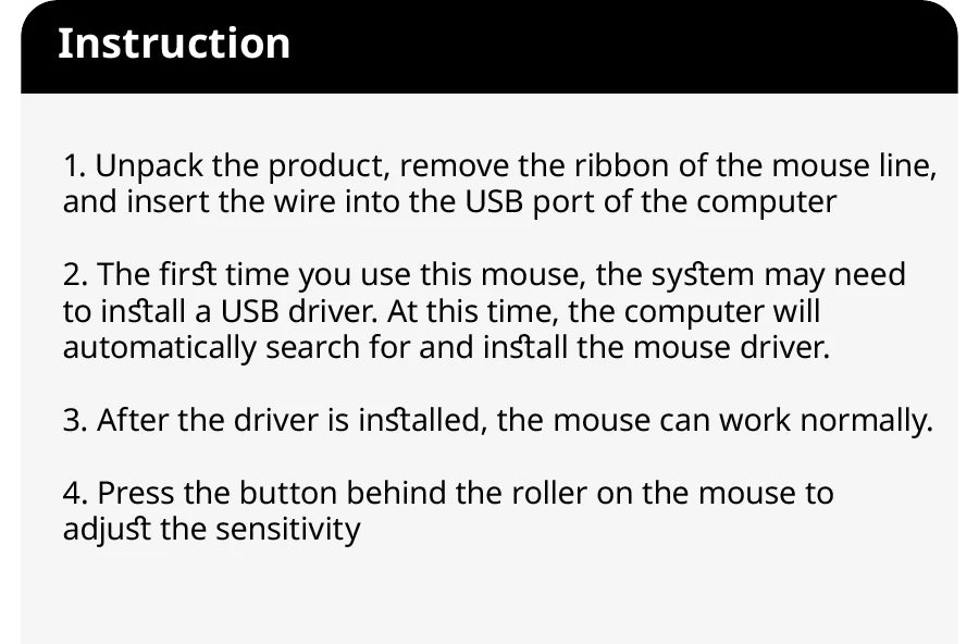 3. Before using the mouse, be sure to carefully check the instructions of the mouse and operate according to the requirements and specifications in the instructions.