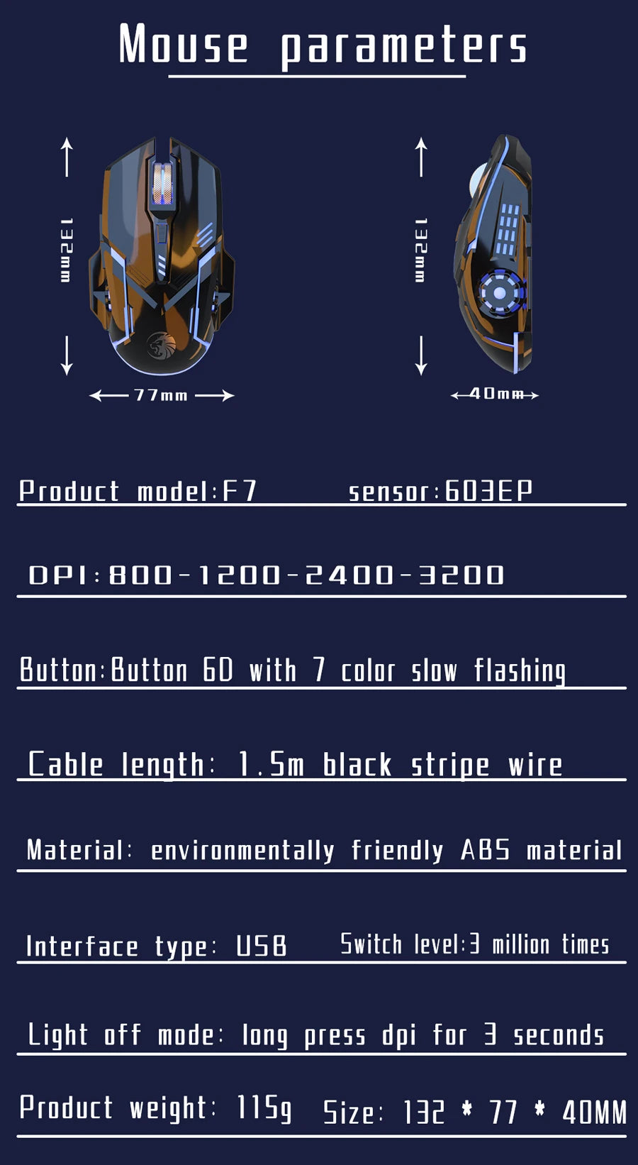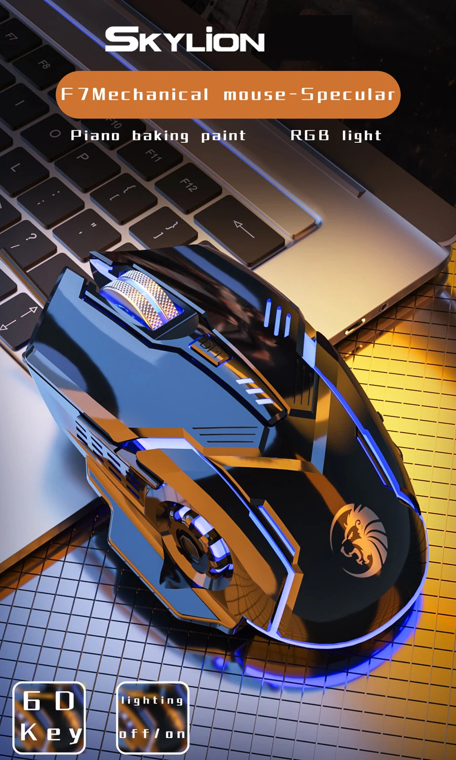 F7 Wired 6 Keys Mouse Colorful Lighting Gaming and Office For Microsoft Windows and Apple IOS System
