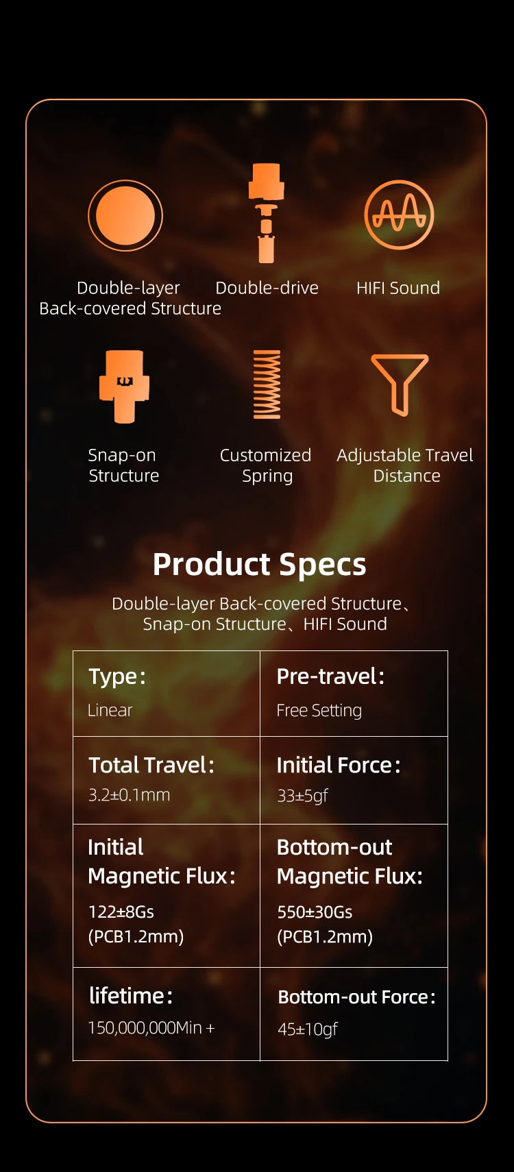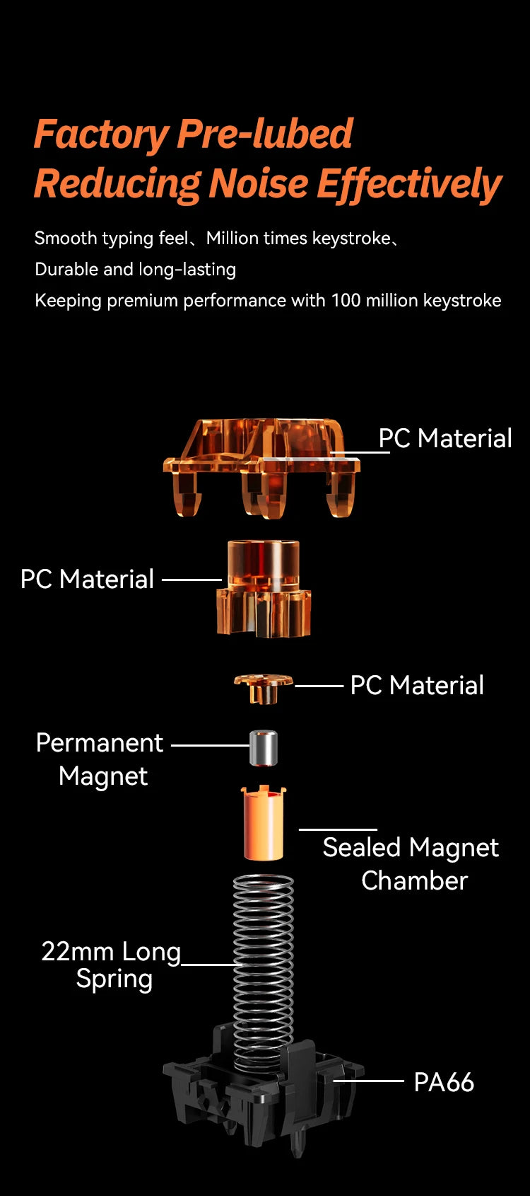 2. This Switch is only compatible with magnetic keyboard and special PCB. Not compatible with mechanical keyboard!!!