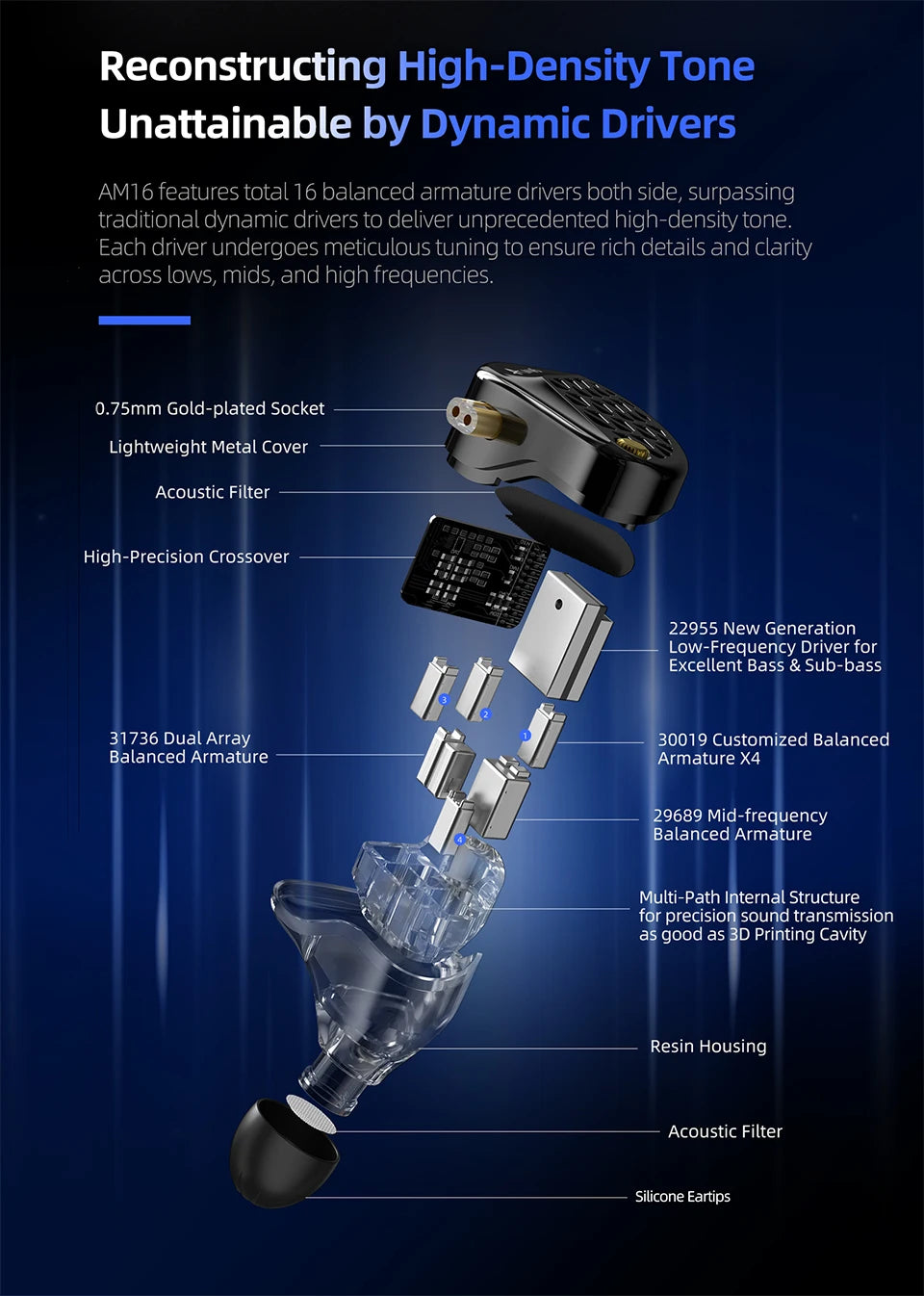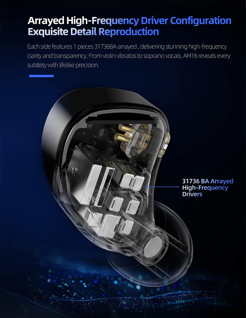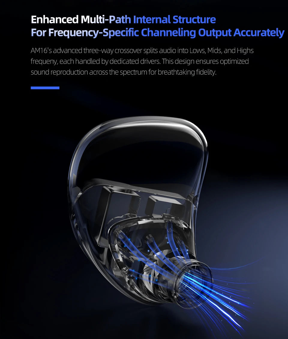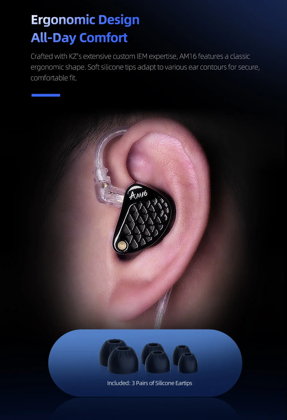 KZ AM16 wired in-ear headphones 16ba balanced armature high fidelity monitor bass noise cancelling headphones sport headphones