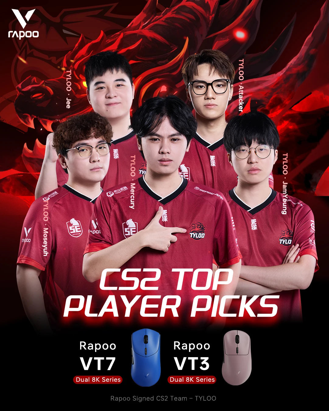 Rapoo VT7 /VT7 MAX Wireless Gaming Mouse, True 8K Wireless Polling Rate, 53g Lightweight, Up to 500 Hr Battery, Nordic nRF54L15 MCU, 10 Programmable Buttons, Macro Enabled