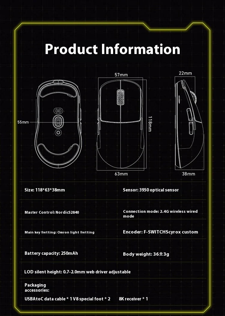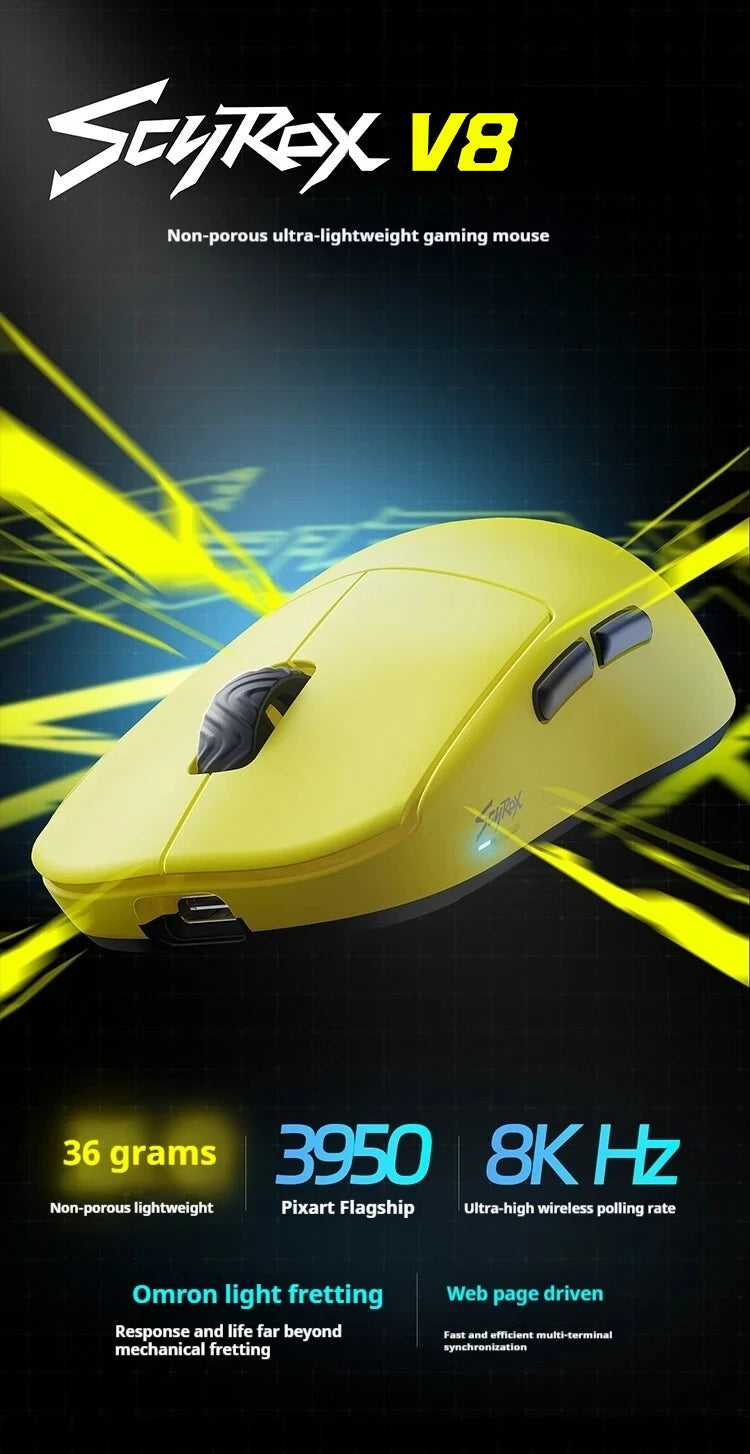 Ready-Stock Scyrox V8 Mouse 8k Return Paw3950 Dual Mode Wireless E-Sports Mouse Ergonomics 36g E-Sports Mice Pc Gamer Accessory