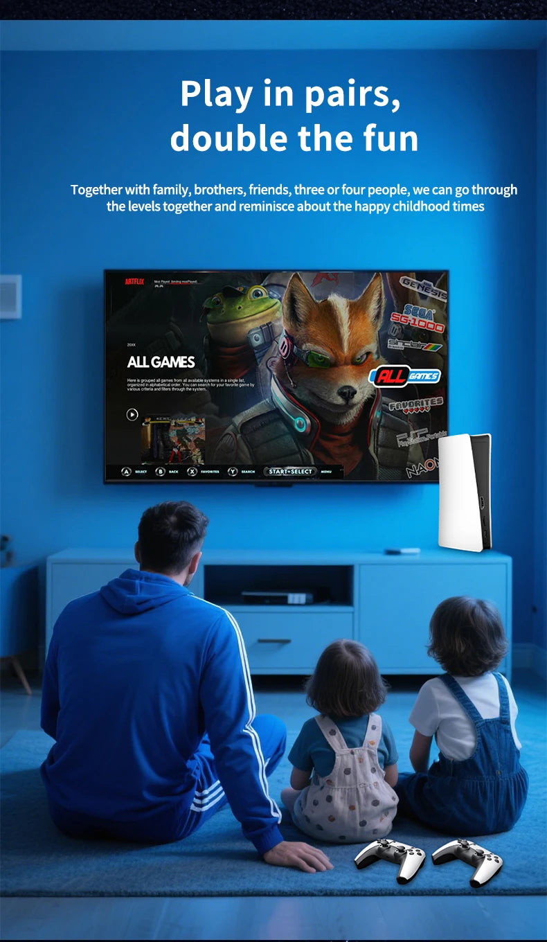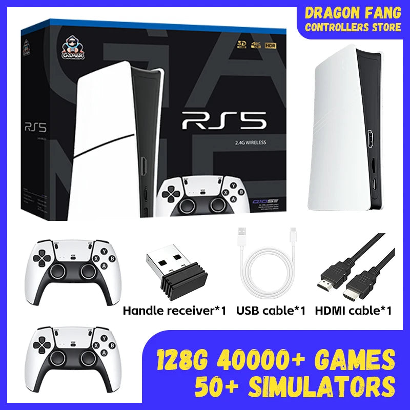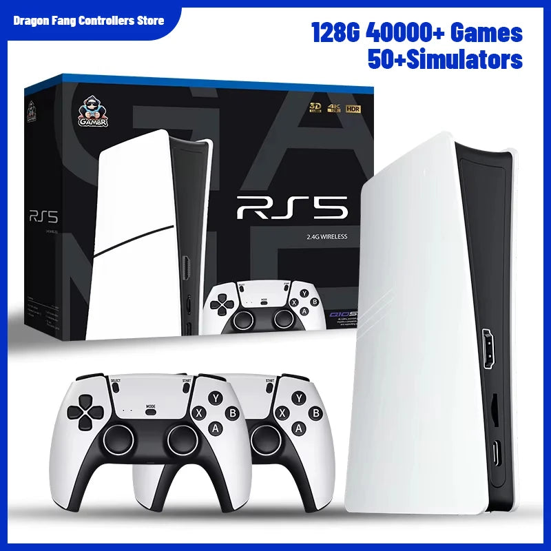 RS5 TV Game Console Dual Stick Wireless Controller Game 40000+128GB Double Joystick 4K Retro Suitable for PC, Android, TV USB