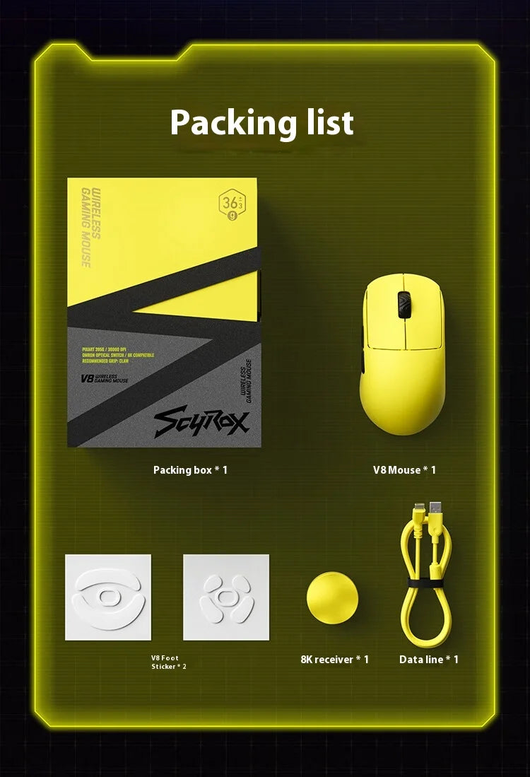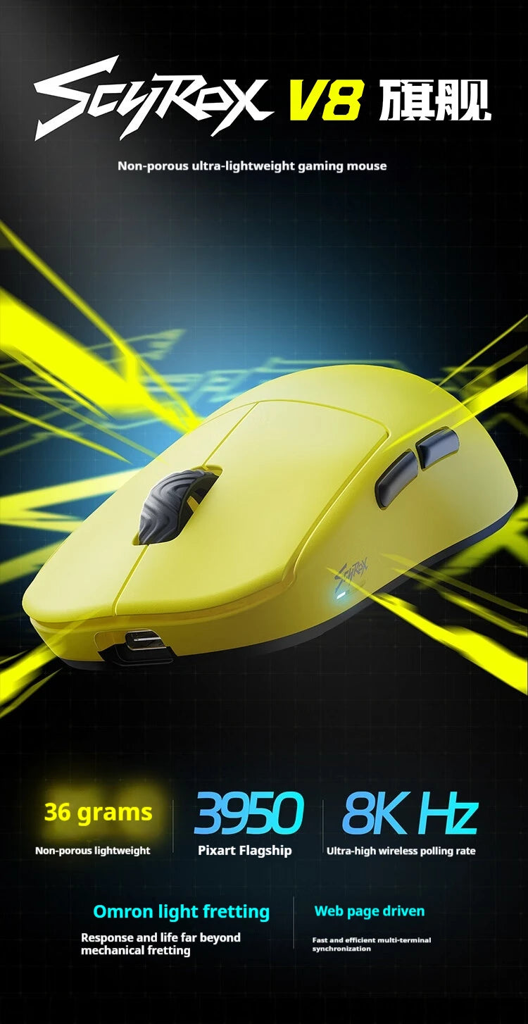 Scyrox V8 Lightweight 36g Wireless Mouse 8K PAW3950 Comfortable Feel E-Sports Gaming Mouse Customized PC Gamer Accessories Gifts