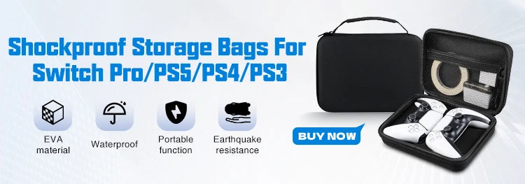 This bag is made from EVA material, broad compatible with Switch Pro/PS5 PS4 PS3/Xbox Series are all applicable! The double zipper design makes it convenience to open and close, there is a fixed grid for accessories storage which avoid the embarrassing situation of losing accessories all the time.