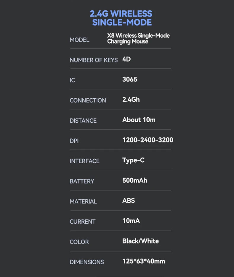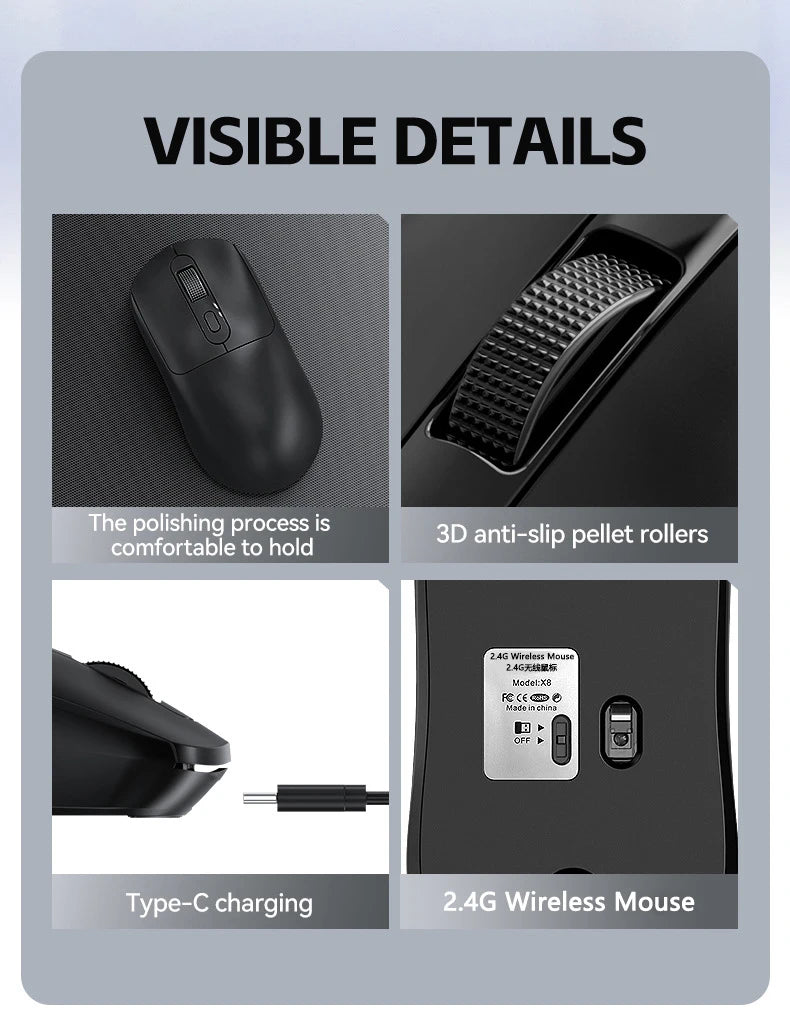 Warvank X8 Wireless Gaming Mouse 500mAh TYPE-C Rechargeable Office Mouse Suitable for Laptop Desktop Computers